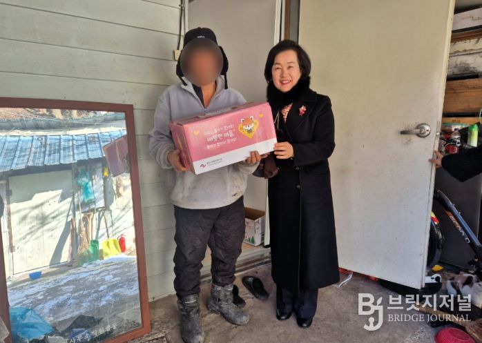 위수미 센터장이 직접 어르신 가정을 방문해 혹한기 대비 식생활용품 및 건강기능식품을 전달하며 안부를 살피고 따뜻한 마음을 더했다.