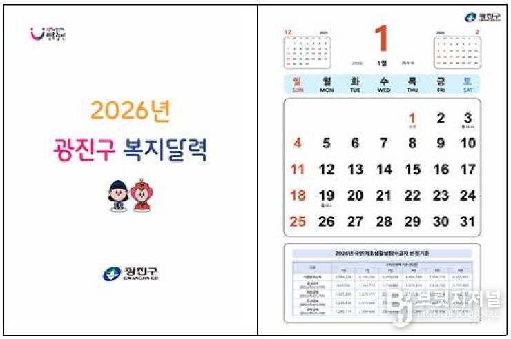 브릿지저널 김경미 기자 | 광진구는 다양한 복지 정보를 수록하여 기초생활수급자가 손쉽게 알 수 있도록 ‘2026년도 복지달력 및 복지지원 안내문’을 제작해 배포한다.