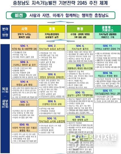 도는 국가 지속가능발전목표(K-SDGs)와의 정합성을 유지하면서도 충남의 지역적 특성을 살린 정책을 추진한다는 방침이다.