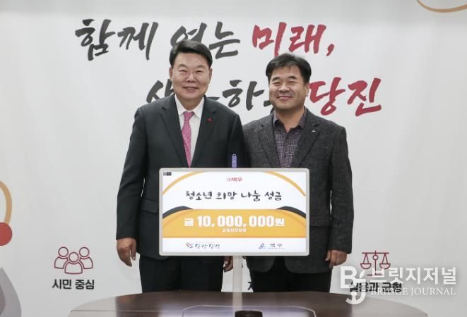 브릿지저널 정보영 기자 | ㈜벽우는 지난 30일 오후 당진시청 7층 접견실에서 지역 내 어려운 이웃을 돕기 위한 성금 1000만 원을 당진시에 기탁했다.