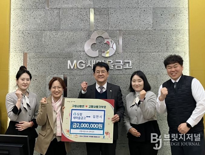 브릿지저널 정보영 기자 | 구미시는 지난 29일 MG 도량 새마을금고가 김천시와 고향사랑기부금 200만 원을 각각 상호 기부하며 지역 간 상생 협력 체계를 한층 강화했다고 밝혔다.