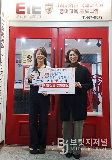 브릿지저널 김경미 기자 | 인천시 남동구 서창2동 행정복지센터는 ‘EiE 고려대어학원 인천서창캠퍼스(대표 문숙)’에 착한가게 29호점 현판을 전달했다고 31일 전했다.