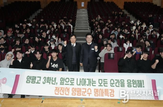 브릿지저널 김경미 기자 | 양평군은 지난 30일 양평고등학교 대극장에서 3학년 학생 120여 명을 대상으로 ‘꿈을 향한 준비, 밝은 내일의 시작’을 주제로 명사 특강을 진행했다고 밝혔다.