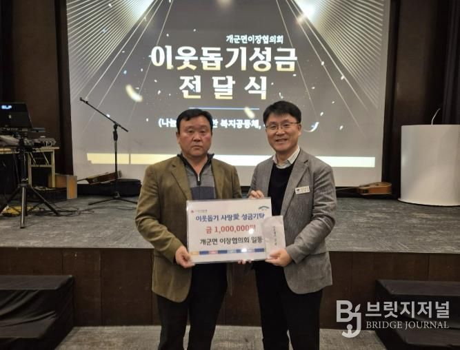 브릿지저널 김경미 기자 | 양평군 개군면은 새해를 맞아 개군면 이장협의회가 지역 내 어려운 이웃을 돕기 위해 성금 100만 원을 기탁하며 따뜻한 나눔을 실천했다고 밝혔다. 기탁된 성금은 개군면 내 취약계층을 위한 복지 지원에 사용될 예정이다.
