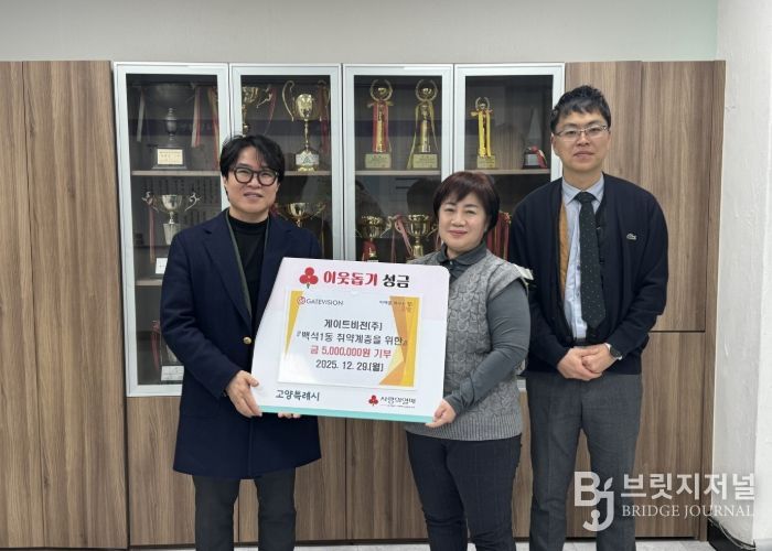 브릿지저널 김경미 기자 | 고양특례시 일산동구 백석1동 행정복지센터는 지난 29일, 관내 기업인 게이트비젼㈜로부터 지역 내 취약계층 지원을 위한 성금 500만 원을 전달받았다고 밝혔다.