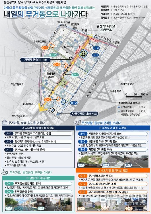 2025년은 총사업비 309억 원 규모의 무거동 도시재생사업 공모에 선정돼 국·시비 255억 원을 확보하는 등 신규 공모사업 31건을 포함해 총 57건의 공모사업에 선정돼 국·시비 365억 원을 확보했다.