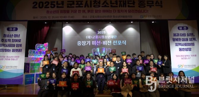 브릿지저널 김경미 기자 | 군포시청소년재단은 2025년 한 해를 마무리하고 새로운 도약을 다짐하기 위해 '2025년 미션·비전 선포식'을 개최했다.