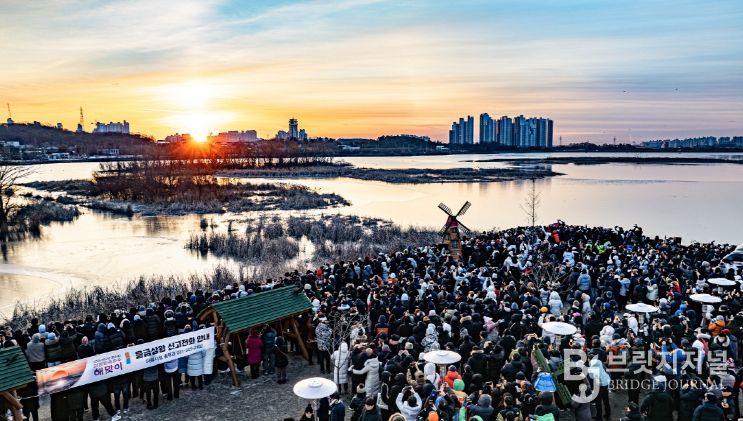 브릿지저널 김경미 기자 | 2026년 병오년(丙午年) 새해 첫날인 1일, 이른 새벽부터 의왕시 왕송호수는 첫 일출을 보려는 시민들로 붐볐다.