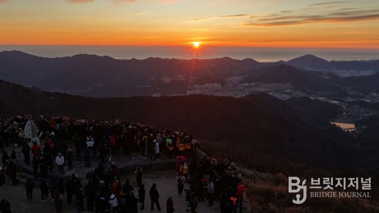 브릿지저널 김경미 기자 | 양산시는 2026년 병오년(丙午年) 새해 첫날인 1월 1일 한반도에서 일출을 가장 먼저 볼 수 있는 천성산 원효봉 천성대 일원에서 ‘천성산 해맞이 행사’가 성황리에 개최됐다고 밝혔다.