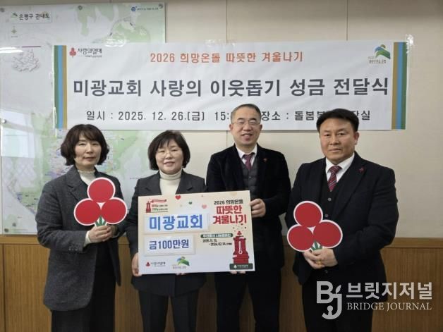 브릿지저널 김경미 기자 | 서울 은평구는 지난달 26일 미광교회와 2026 희망온돌 따뜻한 겨울나기 사랑의 이웃돕기 성금 전달식을 가졌다고 밝혔다.