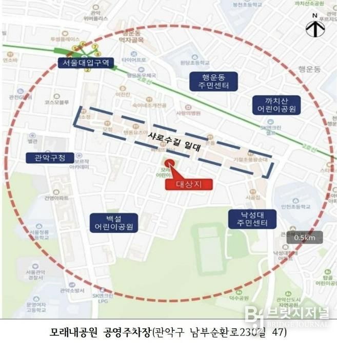 브릿지저널 김경미 기자 | 관악구가 오는 5일부터 ‘모래내공원 공영주차장’ 정식 운영을 시작해 구 대표 상권이자 유동인구가 많은 샤로수길 내 주차 공간 부족 문제를 해소한다.