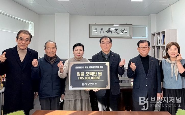 브릿지저널 김경미 기자 | 창녕문화원은 지난 2025년 12월 31일 ‘글길’ 문경주 회원으로부터 지역 문화 발전을 위한 기금 500만 원을 전달받았다고 밝혔다.