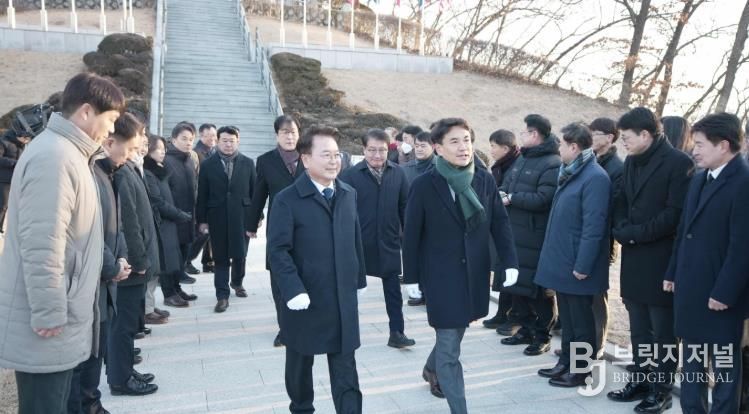 브릿지저널 윤나영 기자 | 춘천시가 2026년 새해 첫 공식일정으로 2일 우두동 충렬탑에서 신년참배를 거행, 춘천의 안녕과 발전을 기원했다.