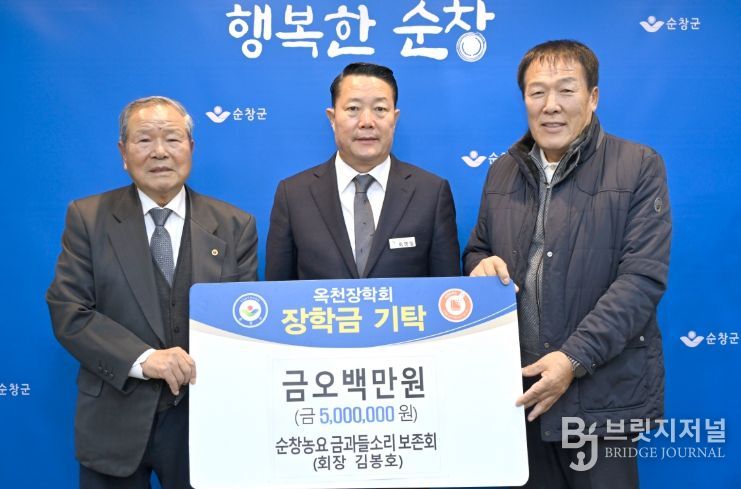 브릿지저널 윤나영 기자 | 순창군은 최근 순창농요 금과들소리 보존회(회장 김봉호)가 (재)순창군옥천장학회에 장학금 500만원을 기탁하며 지역 인재 육성에 힘을 보탰다고 밝혔다.