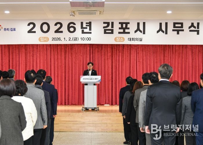 브릿지저널 김경미 기자 | 김포시가 2일 오전 10시, 시청 본관 3층 대회의실에서 ‘2026년도 시무식’을 열고 붉은 말 병오년(丙午年) 새해의 힘찬 출발을 알렸다.
