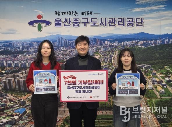 브릿지저널 윤나영 기자 | 울산중구도시관리공단이 울산사회복지공동모금회가 주관하는 희망 2026 나눔 캠페인 ‘7천 원 기부 릴레이’에 동참했다.