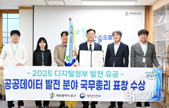 브릿지저널 정보영 기자 | 대전 중구는‘2025 디지털정부 발전 유공 정부포상’공공데이터 발전 부문에서 전국 기초자치단체 중 유일하게 국무총리 기관 표창을 수상했다고 4일 밝혔다.