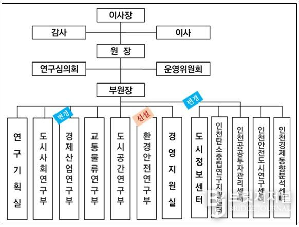 브릿지저널 김경미 기자 | 인천연구원은 2025년 12월 23일 정기이사회에서 의결한 조직개편과 2026년 1월 1일과 1월 5일자 보직인사가 있었다.