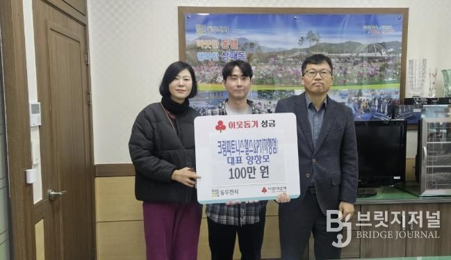 브릿지저널 김경미 기자 | 동두천시 상패동 행정복지센터는 지난 2일 관내 위치한 동두천크림피트니스헬스&PT지행점으로부터 저소득 취약계층을 위한 이웃돕기 성금 100만 원을 기탁받았다고 밝혔다.
