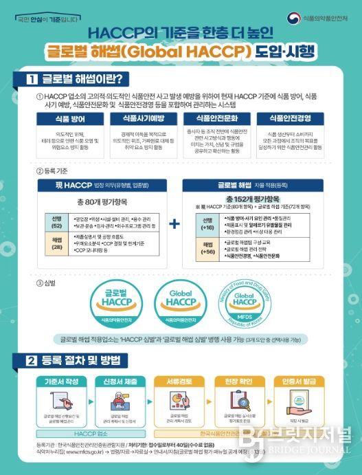참고로 식약처는 지난해 글로벌 해썹 등록 평가 매뉴얼 배포, 도입 희망 업체 대상 교육과정 운영 등을 추진하며, 씨제이제일제당(주) 등 총 13개 업체 54품목이 글로벌 해썹 등록을 완료했다.