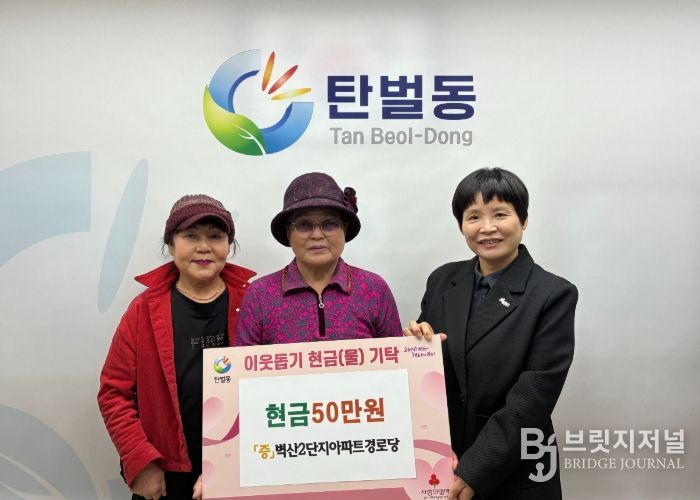 브릿지저널 김경미 기자 | 광주시 탄벌동 벽산2단지아파트 경로당 회원들은 5일 지역 내 어려운 이웃을 돕기 위해 성금 50만 원을 탄벌동 행정복지센터에 기탁했다.