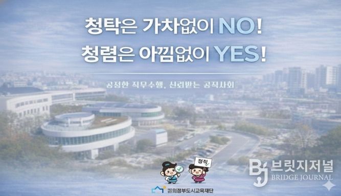 브릿지저널 김경미 기자 | 의정부도시교육재단은 임직원이 청렴의 가치를 자연스럽게 접할 수 있도록 ‘청렴 화면보호기’를 제작·배포하며 내부 청렴문화 확산에 나섰다고 밝혔다.