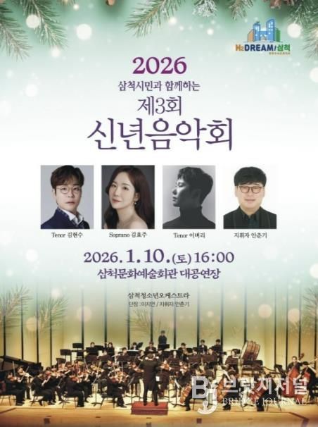 브릿지저널 윤나영 기자 | 삼척시는 새해를 맞아 시민과 함께 문화로 희망을 나누는 '2026 삼척시민과 함께하는 제3회 신년음악회'를 오는 1월 10일 오후 4시, 삼척문화예술회관 대공연장에서 개최한다.