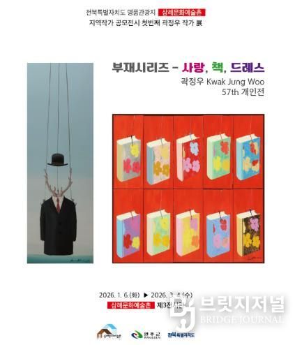 브릿지저널 윤나영 기자 | 완주군이 전북특별자치도 명품 관광지인 삼례문화예술촌에서 지역작가 공모전으로 곽정우 작가의 ‘부재시리즈 – 사랑, 책, 드레스’ 전시를 시작했다.