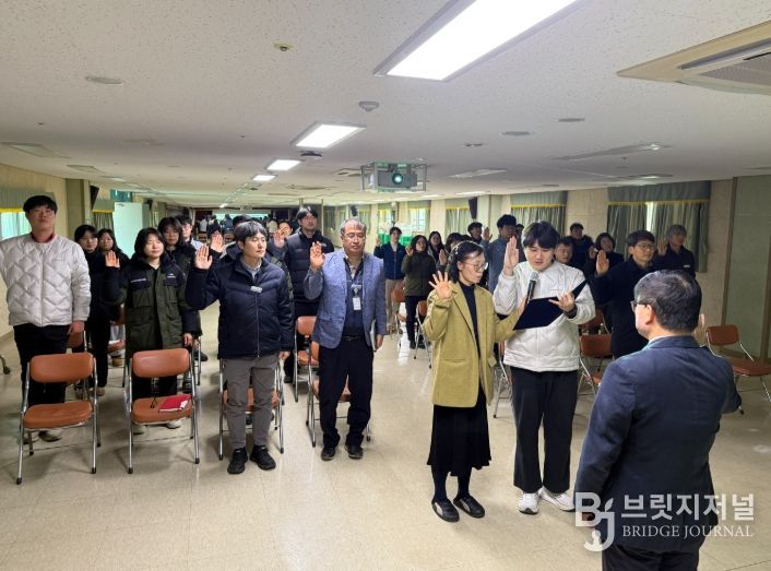 브릿지저널 김진석 기자 | 대구교육낙동강수련원은 1월 5일 중대산업재해 ‘ZERO’를 목표로 직원들이 안전과 건강을 최우선 가치로 인식하고, 안전보건 법규 및 안전보건 수칙을 준수하는 조직문화 조성을 위해 ‘안전보건수칙 준수 서약식’을 개최했다.