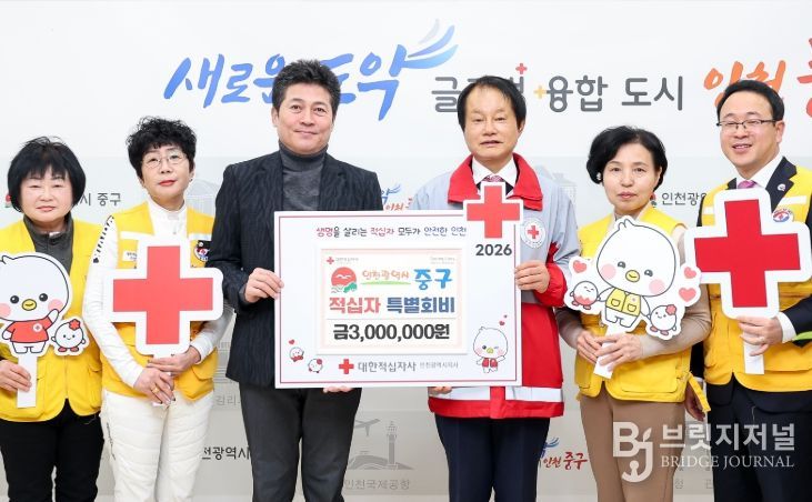 브릿지저널 김경미 기자 | 인천시 중구는 병오년 새해를 맞이해 대한적십자사 인천지사에 ‘2026년도 적십자 특별회비’ 300만 원을 전달하며 나눔과 상생의 가치를 실천했다고 7일 밝혔다.