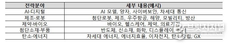 중기부는 국가경쟁력과 직결된 ▲AI·디지털 ▲첨단로봇·제조 ▲제약·바이오 ▲첨단소재·부품 ▲탄소·에너지의 5개 전략분야를 중심으로 단계별 검증을 거쳐 국내 산업생태계 혁신과 글로벌 신시장 창출이 가능한 5개 프로젝트를 선정할 계획이다.