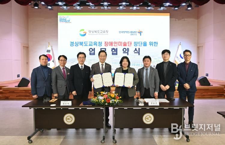 브릿지저널 정보영 기자 | 경북교육청은 8일 본청 웅비관에서 한국장애인고용공단 경북지사와 ‘(가칭)경상북도교육청 장애인미술단’ 창단을 위한 업무협약을 체결했다고 밝혔다.