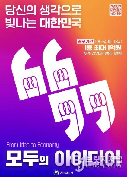 브릿지저널 김경미 기자 | 지식재산처 출범 100일을 맞이하여 국민 누구나 창의적 아이디어로 국가 경제와 사회 발전에 참여할 수 있는 문이 열린다. 정부는 국민 모두가 활발하게 아이디어를 낼 수 있는 장을 마련하고, 우수 아이디어는 실제 정책과 사업으로 현실화하는 ‘패스트 트랙’ (Fast Track)을 가동한다.