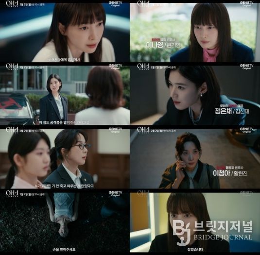 오늘(9일) 공개된 영상은 여성 범죄 피해자 전문 로펌 ‘L&J’(Listen & Join)의 화려한 셀럽 변호사 윤라영(이나영), 완벽한 대표 강신재(정은채), 뜨거운 행동파 변호사 황현진(이청아)의 뚜렷한 컬러를 소개한다.