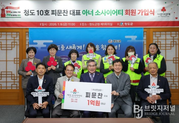 김하수 청도군수는 “피문찬 CEO의 진정어린 나눔에 깊이 감사드리고, 회원 가입을 진심으로 축하드리며, 보여 주신 선한 영향력이 선순환되어 청도군이 더 따뜻한 행복공동체가 될 것임을 확신한다”고 말했다.