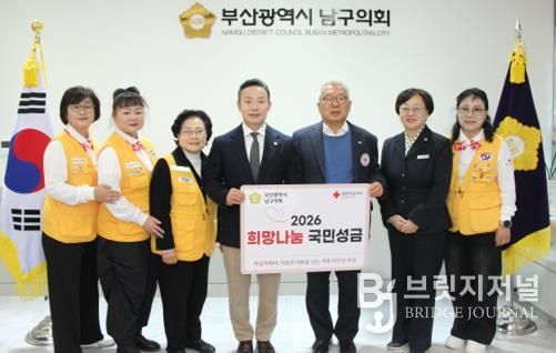 브릿지저널 윤나영 기자 | 부산광역시 남구의회는 1월 9일 오전 9시 30분, 남구의회 2층 의장실에서 '2026년도 적십자 희망나눔성금 모금 전달식'을 개최하고 대한적십자사 부산광역시지사에 성금 100만원을 전달했다.