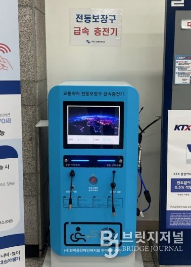 브릿지저널 정보영 기자 | 구미시가 장애인의 이동권 보장과 사회참여 확대를 위해 시민 이용이 많은 주요 교통 거점인 구미역과 사곡역에 전동보장구 급속 충전기를 각각 1대씩 설치했다.