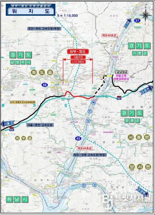 브릿지저널 김경미 기자 | 국가지원지방도 86호선 와부~화도 4.3㎞ 구간이 5년 8개월 동안의 공사를 마치고 13일 전격 개통된다.