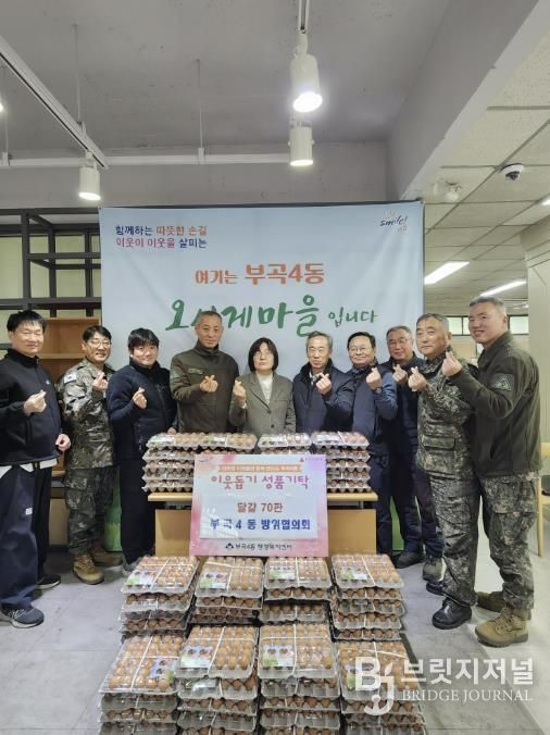 브릿지저널 윤나영 기자 | 부산시 금정구 부곡4동 방위협의회는 새해를 맞아 지난 9일 지역 내 저소득 이웃을 돕기 위해 달걀 70판을 부곡4동에 기탁했다.