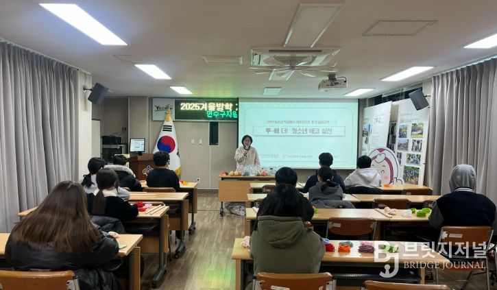 브릿지저널 김경미 기자 | 연수구자원봉사센터는 겨울방학을 맞아 지난 9일 청소년 자원봉사자 15명을 대상으로 환경교육 프로그램 '행복을 두드리는 안마봉'을 운영하며, 환경 보호와 나눔을 실천하는 의미 있는 시간을 마련했다.