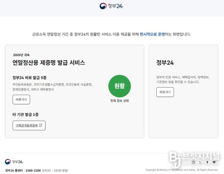 브릿지저널 김경미 기자 | ‘정부24’에서 2025년 귀속 연말정산에 필요한 주민등록등본 등 5종의 증명서를 평소보다 더 간편하게 발급받을 수 있다.