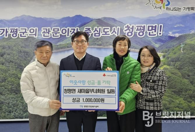브릿지저널 김경미 기자 | 가평군 청평면 새마을부녀회는 최근 청평면 행정복지센터를 방문해 지역 내 어려운 이웃을 돕기 위한 성금 100만 원을 기탁했다.