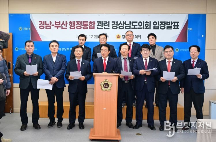브릿지저널 김경미 기자 | 경상남도의회는 1월 12일, 도의회 브리핑룸에서 기자회견을 열고, 현재 추진 중인 경남·부산 행정통합 논의와 관련해 통합의 방향성에는 공감하되, 성급한 추진에 대해서는 신중한 접근이 필요하다는 공식 입장을 밝혔다.