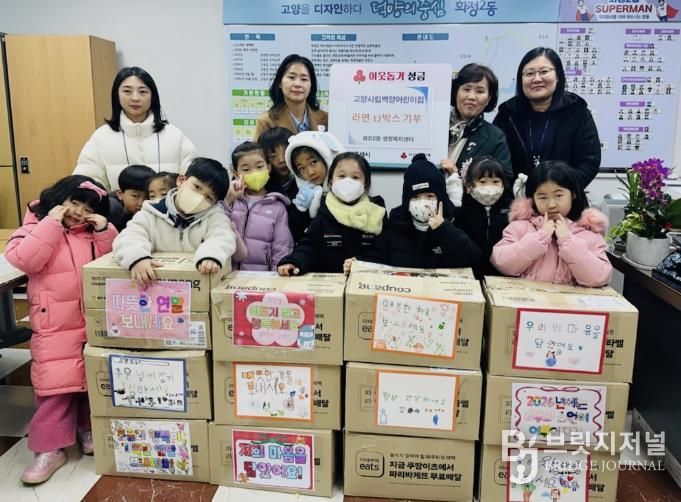 브릿지저널 김경미 기자 | 고양특례시 덕양구 화정동은 지난 9일 고양시립백양어린이집에서 화정2동 행정복지센터를 방문해 소외된 이웃들의 따뜻한 겨울나기를 돕기 위한 사랑의 라면을 전달했다고 밝혔다.