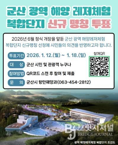브릿지저널 윤나영 기자 | 군산시가 군산 광역 해양레저체험 복합단지의 새로운 명칭과 관련한 시민 참여 선호도 조사를 18일까지 실시한다.