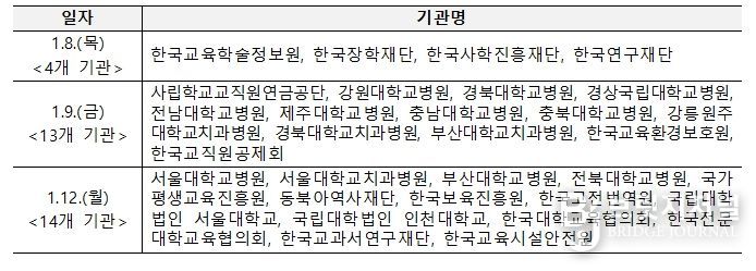 브릿지저널 김경미 기자 | 교육부는 1월 8일부터 1월 12일까지 3일에 걸쳐 소관 공공기관과 주요 유관기관으로부터 업무보고를 받았다. 이번 업무보고는 각 기관이 본연의 임무를 충실히 이행하고 있는지 점검하기 위해 마련됐으며, 특히, 한국장학재단 등 지역으로 이전한 기관에는 지역 균형발전에 기여하기 위해 노력하고 있는지도 확인했다.