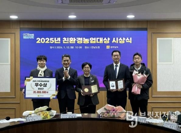 브릿지저널 김경미 기자 | 영암군이 12일 전라남도의 ‘2025년 친환경농업대상 시상식’에서 우수상과 함께 상사업비 3,500만원, 포상금 150만원을 받았다.