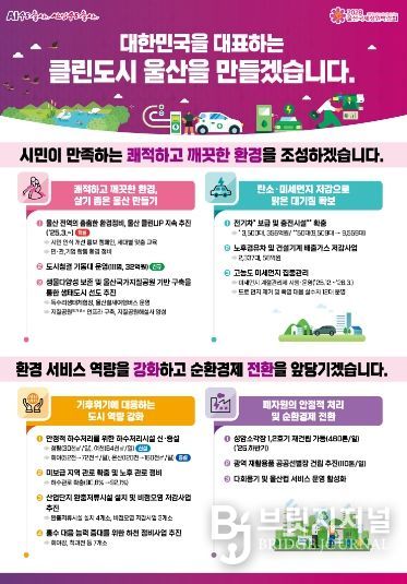 울산시는 ▲쾌적하고 깨끗한 환경, 살기 좋은 울산 만들기 ▲탄소·미세먼지 저감으로 맑은 대기질 확보 ▲기후위기에 대응하는 도시 역량 강화 ▲폐자원의 안정적 처리 및 순환경제 전환 등 4대 분야를 중심으로 관련 사업을 추진할 계획이다.