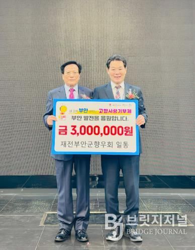 브릿지저널 윤나영 기자 | 부안군은 지난 10일 알펜시아컨벤션에서 열린 재전부안군향우회 회장 이취임식에서 향우회원 일동이 고향사랑기부금 300만원을 기탁했다고 밝혔다.