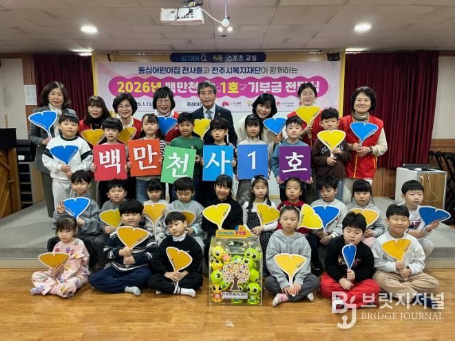 브릿지저널 윤나영 기자 | 전주시복지재단은 13일 2026년 새해 백만천사 기부캠페인의 시작을 알리는 ‘2026년 백만천사 1호 기부금 전달식’을 개최했다.